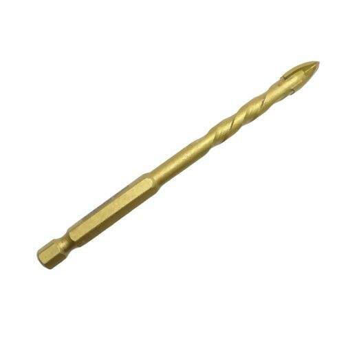 Broca em aço carbono com ponta de tungstênio para vidro, ponta dupla (cruz) em carboneto de tungstênio. Indicada para furar vidro, porcelanato e cerâmica. Para uso em furadeiras. Encaixe 1/4" hexagonal.